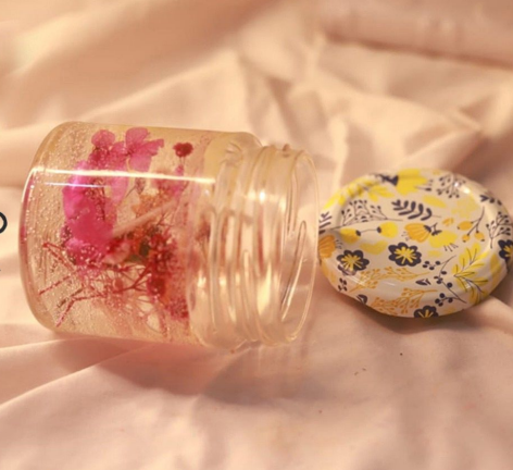 This floral gel jar candle features transparent gel wax with colourful dried flowers suspended inside, giving it a luxurious and aesthetic look.
