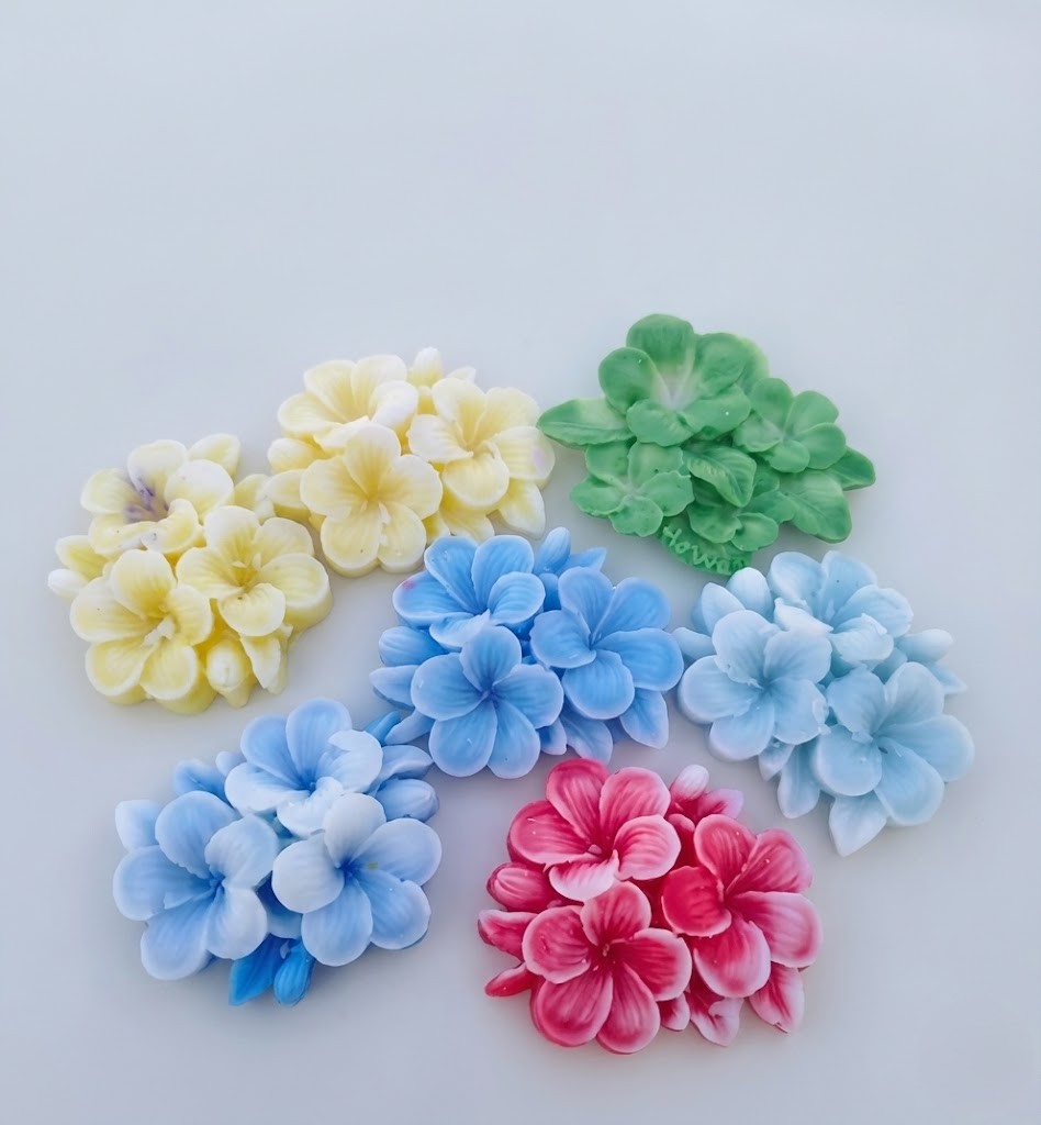 Each candle is decorated with delicately crafted plumeria flowers in pastel and vibrant color themes, giving it a premium artisanal look.
