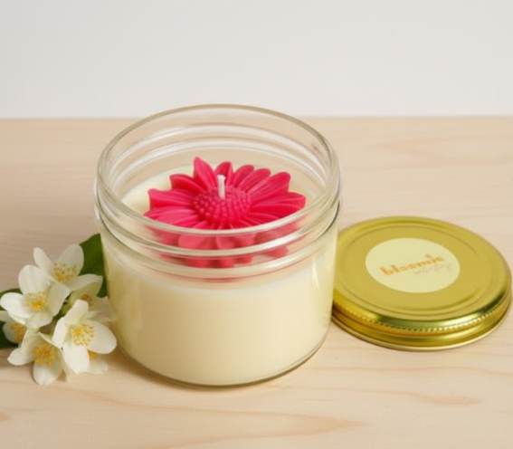• Bright flower-shaped wax topper