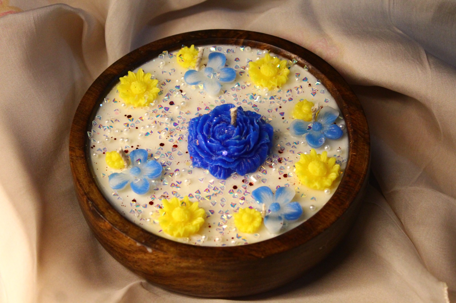 A vibrant combination of bright yellow daisies and blue florals, giving a lively summer feel. Ideal for living rooms, gifting and celebrations.